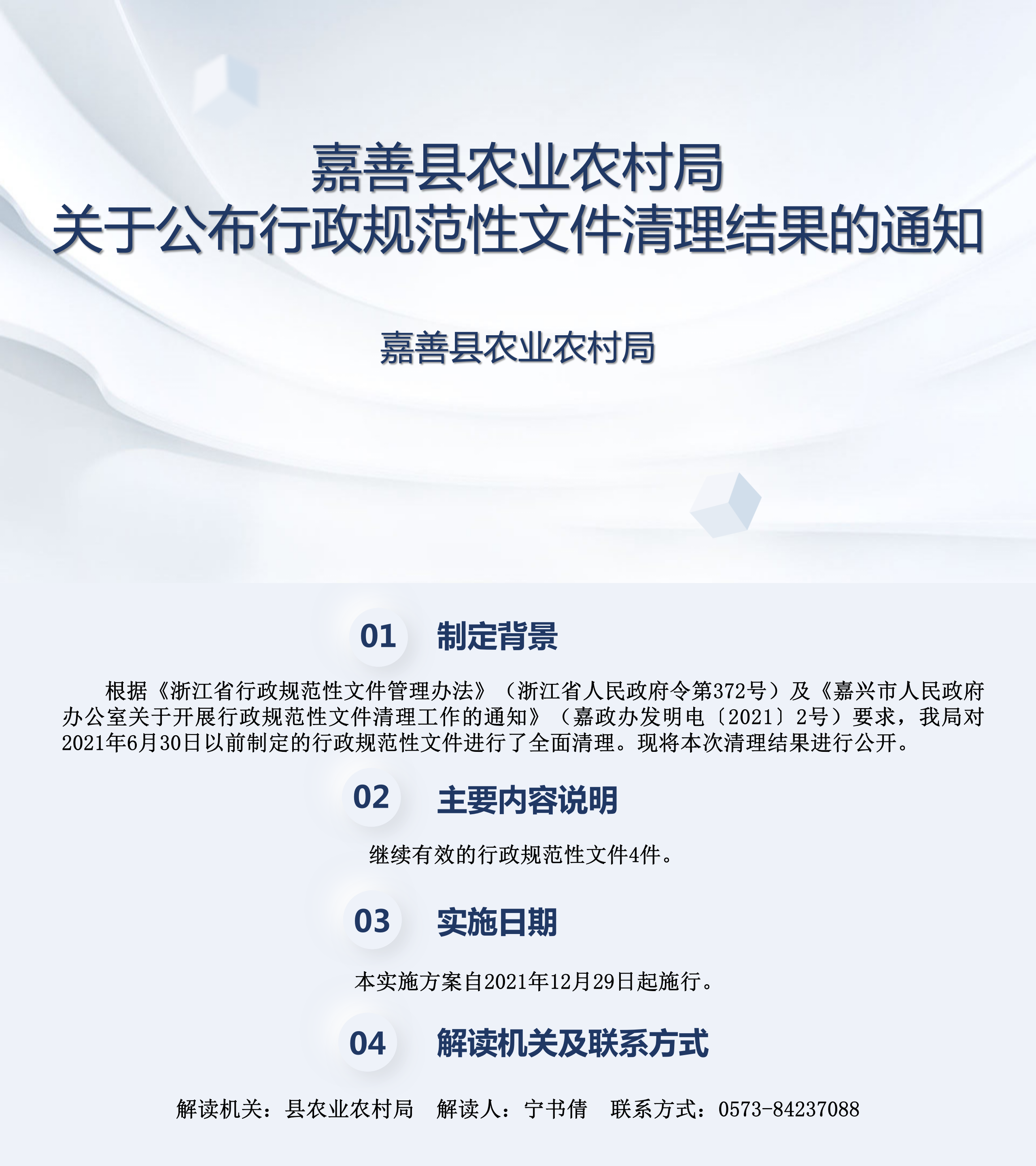 圖解《嘉善縣農業農村局關于公布行政規范性文件清理結果》