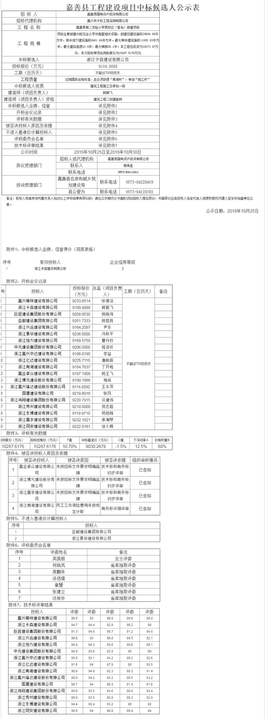 嘉善縣第二實驗小學(xué)西校區(qū)中標(biāo)候選人公示