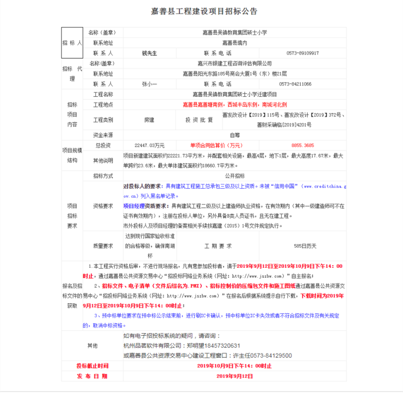 吳鎮教育集團碩士小學遷建項目招標公告