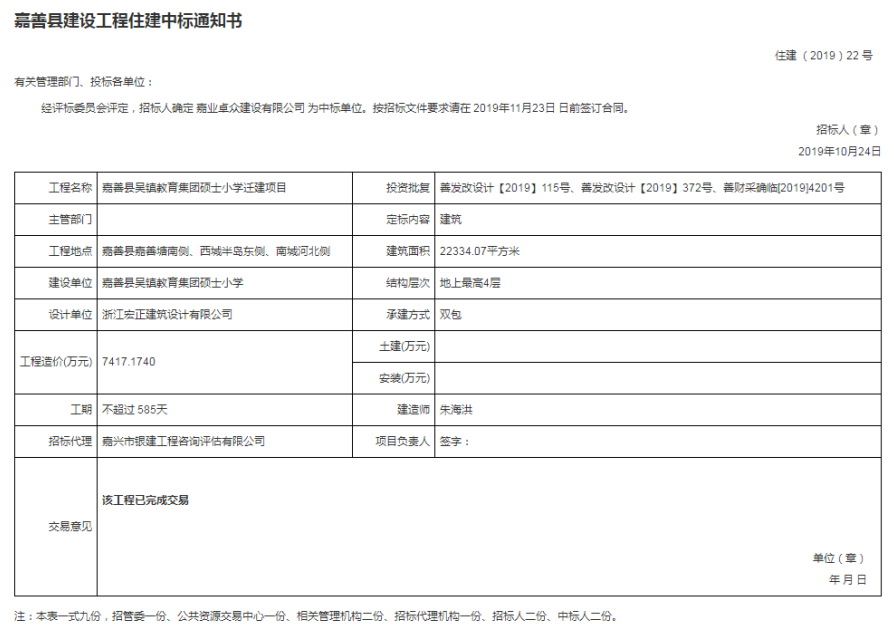 吳鎮教育集團碩士小學遷建項目中標結果公示
