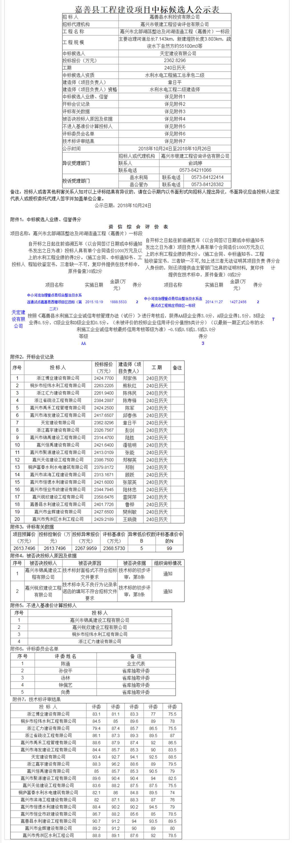 嘉興市北部湖蕩整治及河湖連通工程(嘉善片)一標段中標候選人公示