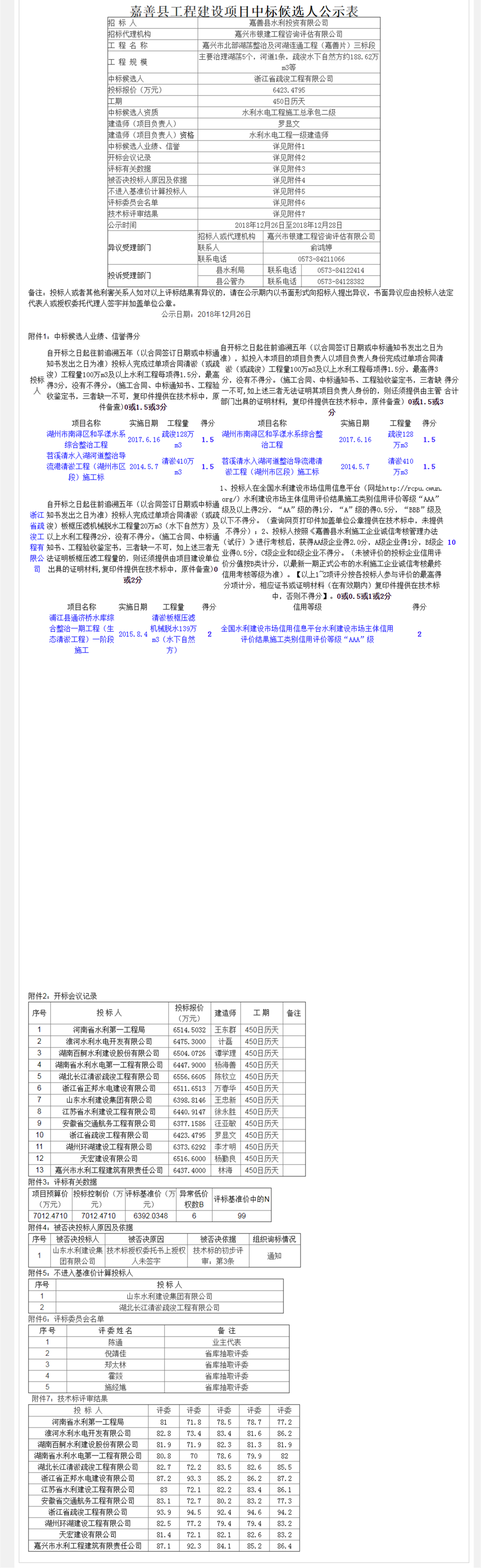 嘉興市北部湖蕩整治及河湖連通工程(嘉善片)三標段中標候選人公示