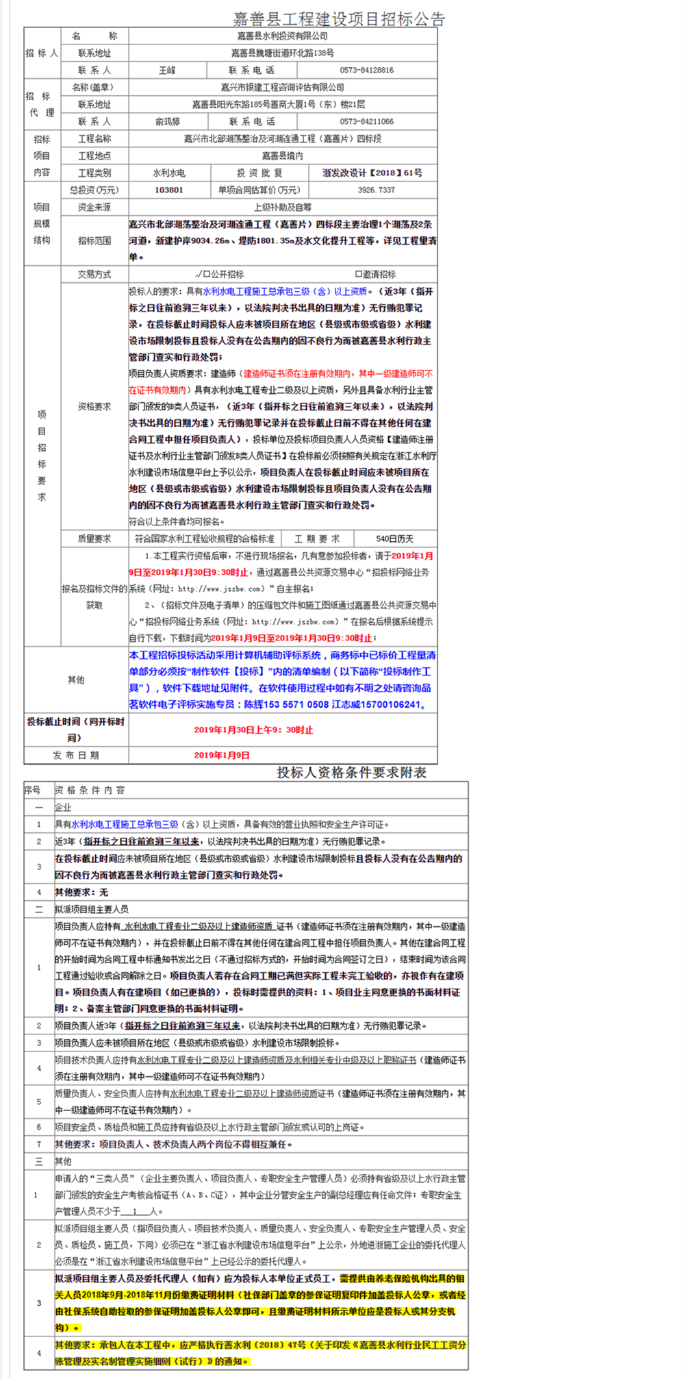嘉興市北部湖蕩整治及河湖連通工程(嘉善片)四標段招標公告
