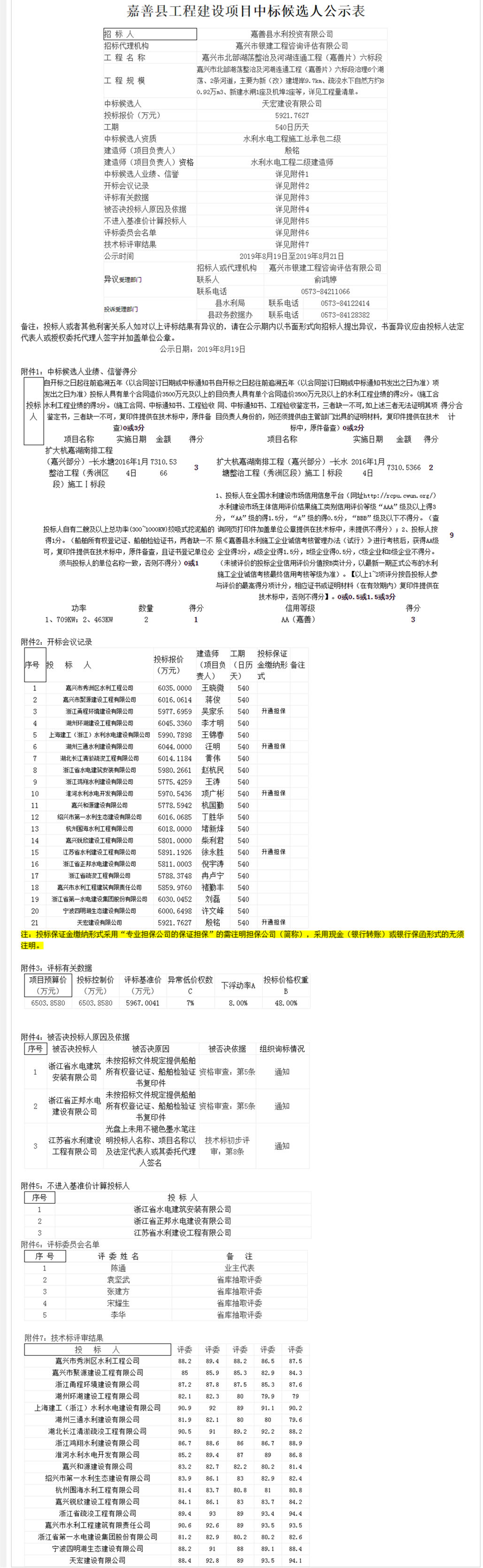 嘉興市北部湖蕩整治及河湖連通工程(嘉善片)六標段中標候選人公示