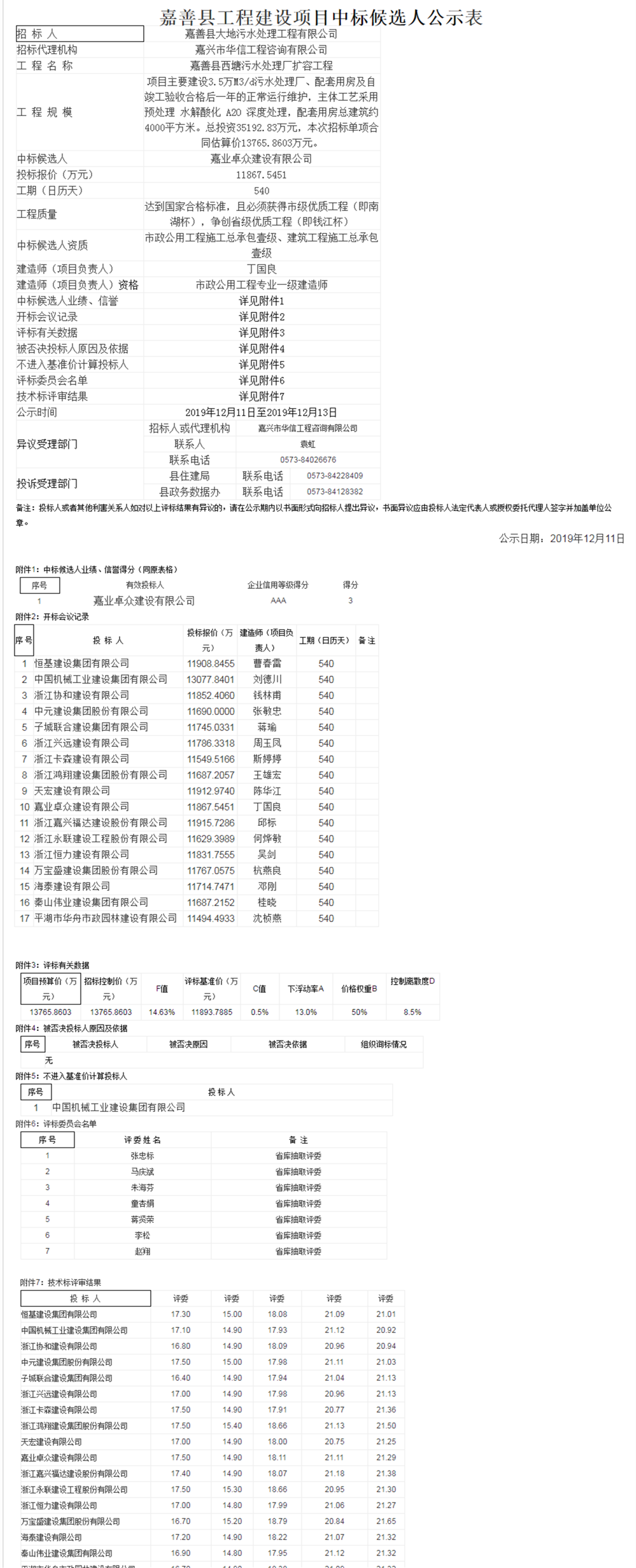 嘉善縣西塘污水處理廠擴容工程中標候選人公示