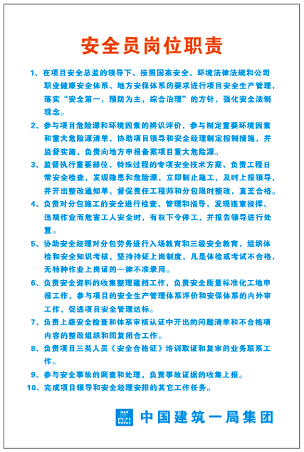 安全員職責、資料員崗位職責、施工員崗位職責圖