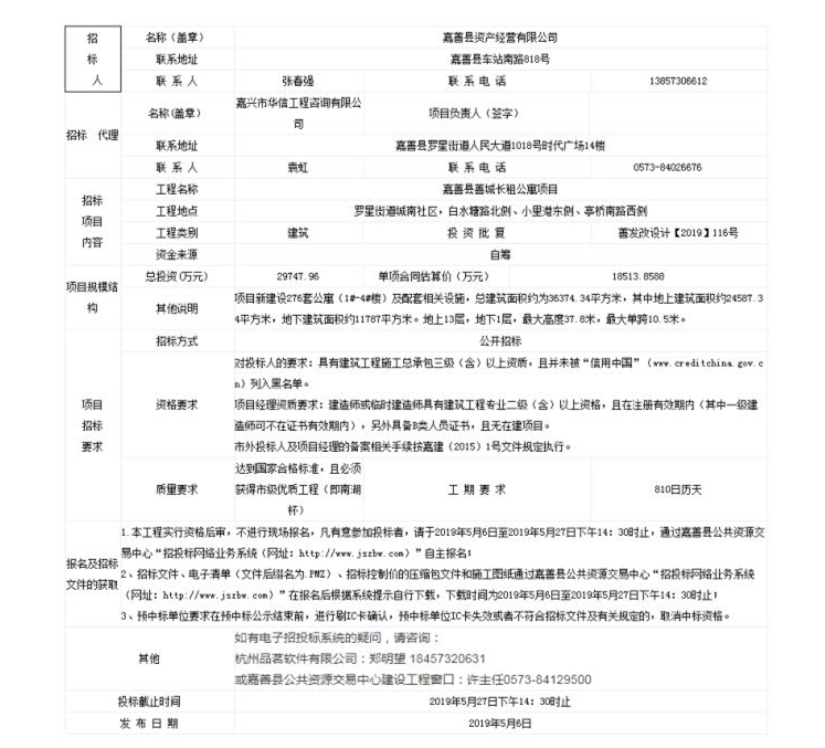 嘉善縣善城長租公寓項目招標公告