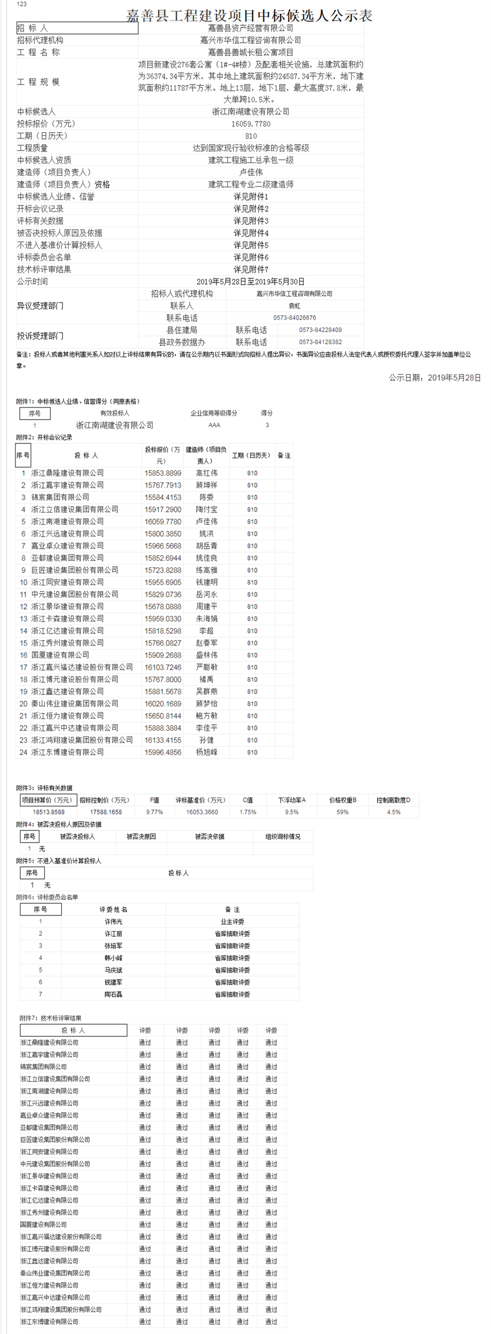 嘉善縣善城長租公寓中標候選人公示
