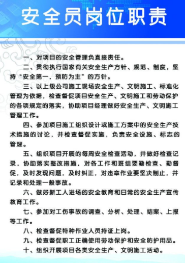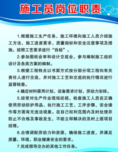 安全員職責、資料員崗位職責、施工員崗位職責圖