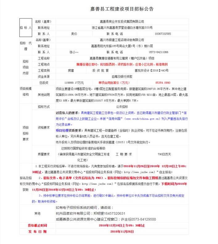 嘉善縣魏塘街道善和苑公寓房(棚戶區改造)項目招標公告