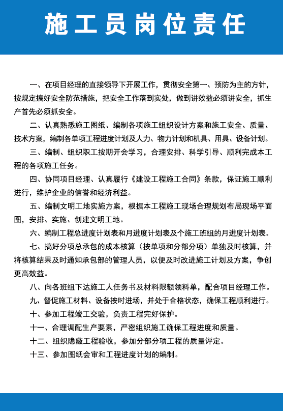 安全員職責、資料員崗位職責、施工員崗位職責圖