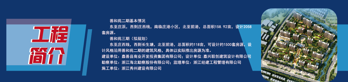 您當(dāng)前的位置:首頁 > 政務(wù)公開 > 重點(diǎn)領(lǐng)域 > 重大建設(shè)項目批準(zhǔn)和實(shí)施領(lǐng)域 > 嘉善縣魏塘街道善和苑公寓房(棚戶區(qū)改造)項目 > 施工有關(guān)信息