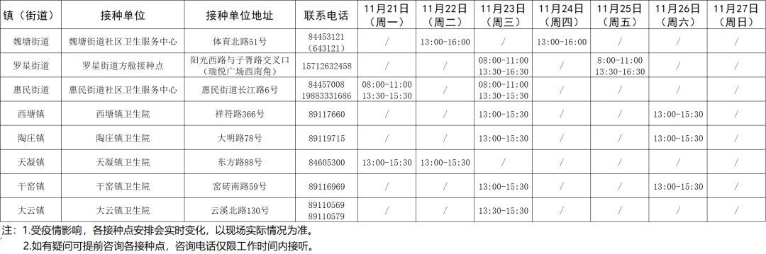 2022年11月21日-11月27日嘉善縣新冠疫苗接種安排