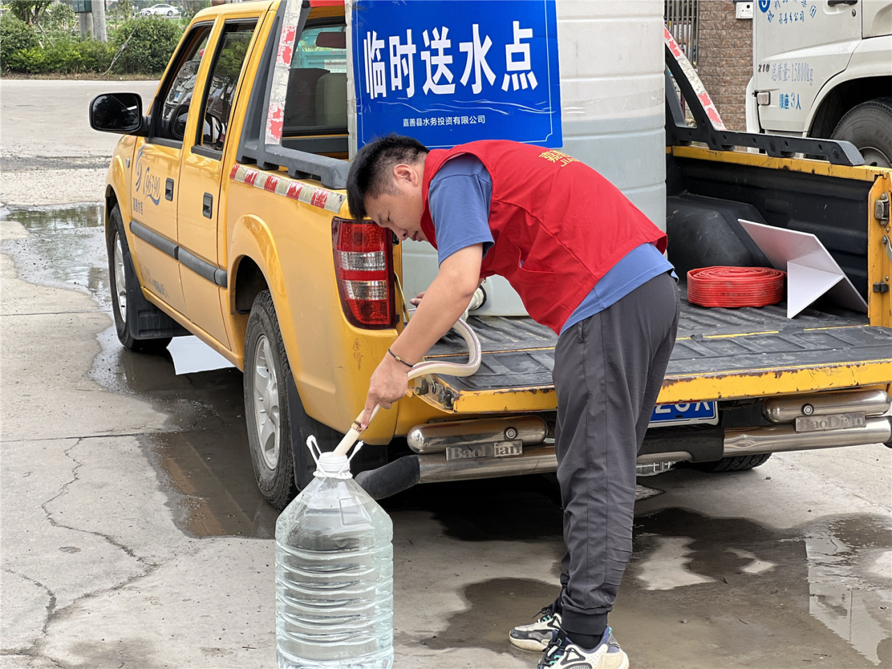 前期,縣水務(wù)集團已聯(lián)合各村(社區(qū))及小區(qū)物業(yè)通過發(fā)短信、發(fā)通知等形式,告知用戶事先做好停水應(yīng)急措施。搶修期間,除了有工程車流動送水到家門口外,受影響的小區(qū)內(nèi)也臨時設(shè)置了取水點,供居民免費取水。