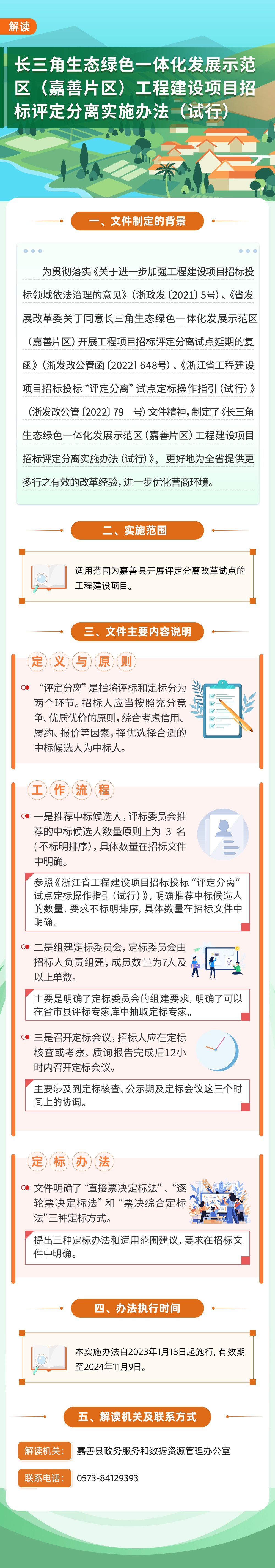 圖解《長三角生態綠色一體化發展示范區(嘉善片區)工程建設項目招標評定分離實施辦法(試行)》