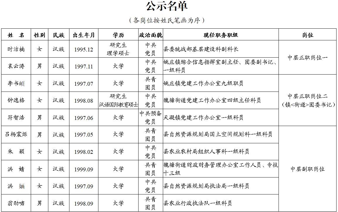 嘉善縣優(yōu)秀年輕干部比選競(jìng)崗擬任人選公示通告 | |||