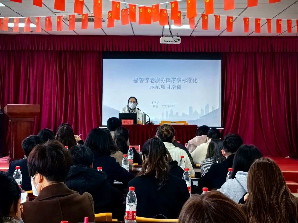 培訓邀請標準化高級工程師梁艷華對服務業組織標準化工作、標準編寫規則以及標準化案例等方面開展培訓。通過培訓,旨在深化參會人員對養老服務業標準化示范項目的理解和認識,穩步推進新標準體系框架編制、養老示范機構建設等工作。