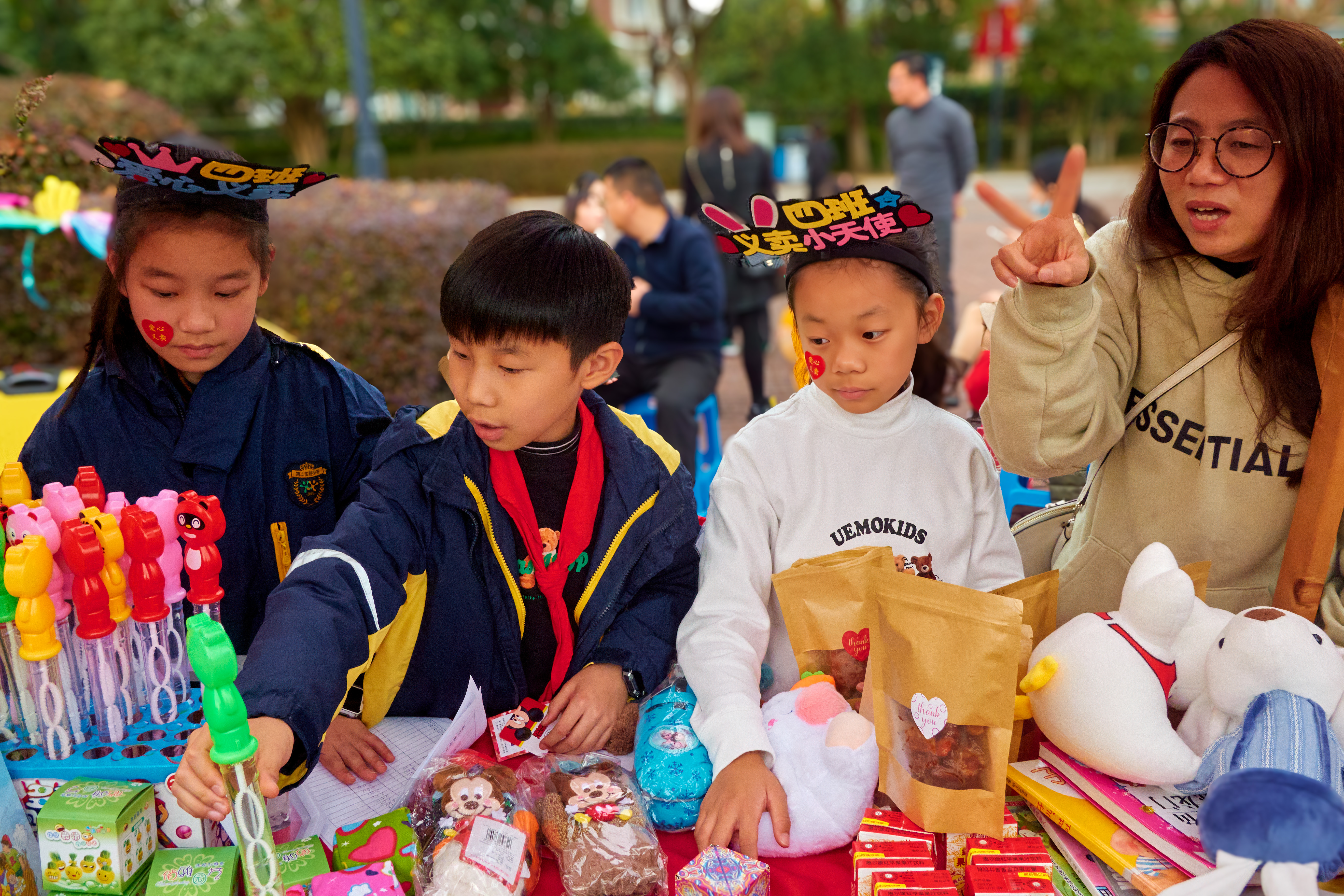 善心傳承,分享美好。小朋友們擺攤義賣奉獻愛心,助力公益慈善。