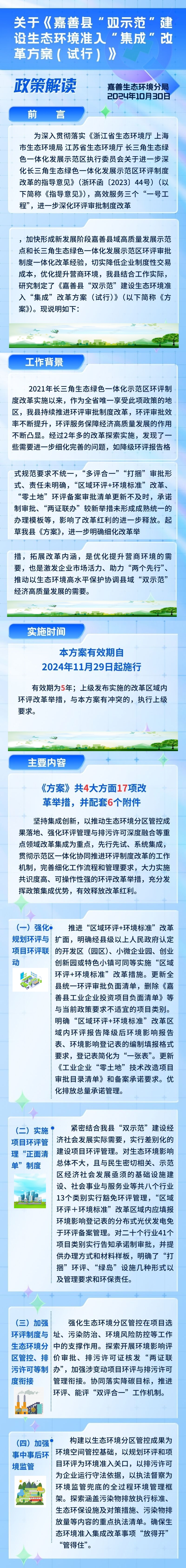 圖解《嘉善縣人民政府關于印發嘉善縣“雙示范”建設生態環境準入“集成”改革方案(試行)的通知》