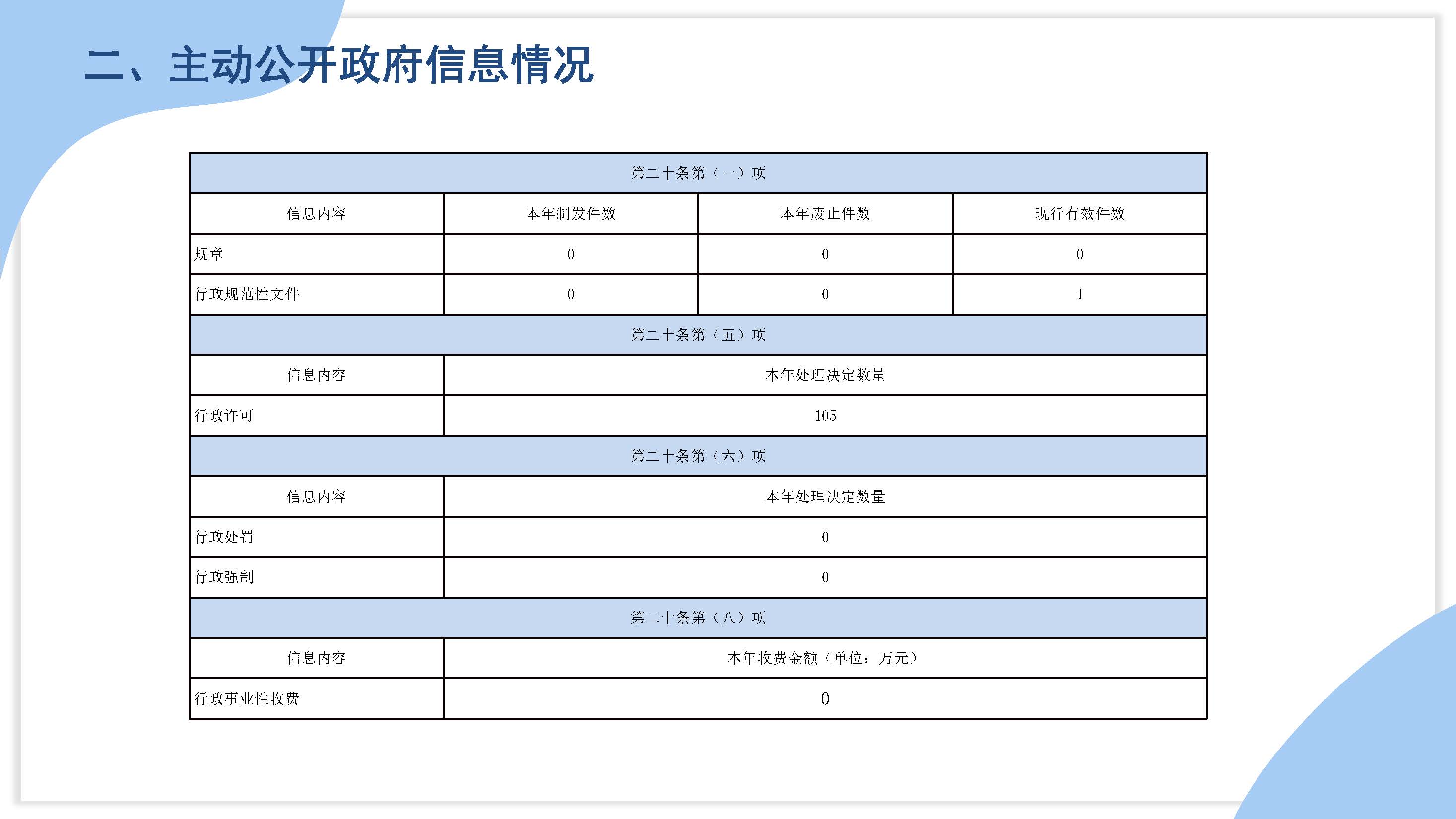 為了更好地提供政府信息公開服務,使公眾便捷、準確地獲取嘉善縣水利局的政府信息,根據《中華人民共和國政府信息公開條例》(以下簡稱《條例》)的規定和要求,制訂本指南。 一、政府信息公開工作機構 嘉善縣水利局辦公室負責本機關信息公開工作。 工作機構名稱:嘉善縣水利局 辦公地址:嘉善縣環北東路138號 辦公時間:8:30—11:30 14:00—17:30(周一至周五,節假日除外) 聯系電話:0573-84122941 本機關無傳真號碼 互聯網聯系方式:在浙江政務服務網統一政務咨詢投訴舉報平臺(http://zxts.zjzwfw.gov.cn/wsdt),點擊“我要咨詢、我要投訴、我要舉報、領導信箱、我要建議、查詢評價、我要視頻”相關欄目,提出政府信息公開工作相關意見建議。浙江省統一政務咨詢投訴舉報平臺不受理政府信息公開申請。 依申請公開互聯網申請受理網址: http://www.waqvlmxb.cn/col/col1229425612/index.html 二、主動公開 1.主動公開范圍。 遵循公正、公平、合法、便民原則,縣水利局辦公室按照《條例》第十九條、第二十條規定,依法向社會主動公開涉及群眾切身利益、需要群眾廣泛知曉或者需要公眾參與決策的政府信息,以及依照法律、法規、規章和國家有關規定應當主動公開的信息,并遵照上級行政機關部署,結合實際工作不斷增加主動公開內容。 2.主動公開內容。 (1)嘉善縣水利局領導及分工; (2)嘉善縣水利局工作機構及其主要職能; (3)嘉善縣水利局依法公開的部門文件; (4)嘉善縣水利局重點工作; (5)嘉善縣水利局財政預算、決算報告; (6)嘉善縣水利局人事任免; (7)其他需要公開的政府信息。 具體信息可參見嘉善縣門戶網站政府信息公開目錄。 3.信息分類和編排體系。 按照“政府信息目錄編制要充分體現‘五公開’、政策解讀、輿情回應、公眾參與”的要求,當前政府信息按照組配分類和政務“五公開”進行編排。其中,組配分類有“領導之窗、政府機構、規范性文件、政府文件、部門文件、政策解讀、政府工作報告、政府公報、決策制度、重大行政決策事項、意見征集、意見反饋、人事任免、財政預決算、三公經費、財政收支情況、政府債務、專項資金、政府采購、統計公報、經濟運行數據、數據發布與解讀、部門動態、鄉鎮動態、國民經濟和社會發展規劃、專項規劃、空間規劃、其他規劃、計劃總結、應急預案、應急預警及應對、行政復議決定書、公告公示、主動回應、在線訪談、人大代表建議、政協委員提案”等內容;政務“五公開”分類有“決策公開、執行公開、管理公開、服務公開、結果公開”信息內容。 信息公開目錄以分類導航區、檢索區和目錄區來展示相關內容。檢索區分別提供全站搜索和精準檢索2種方式;目錄區顯示索引號、標題、發布單位、發布日期等內容。具體信息編排包含了索引號、發布機構、文號、公開日期、正文等內容。 4.公開方式。 嘉善縣水利局主動公開的政府信息將通過嘉善縣人民政府門戶網站(http://www.waqvlmxb.cn)。另外,還將通過新聞發布會、報刊、廣播、電視等載體予以公開。 5.公開時限。 屬于主動公開范圍的政府信息,自信息形成或者變更之日起20個工作日內予以公開。法律、法規對政府信息公開的期限另有規定的,從其規定。 三、依申請公開 公民、法人或者其他組織(以下簡稱申請人)可申請嘉善縣水利局主動公開以外的政府信息。嘉善縣水利局在公開政府信息前,依照《中華人民共和國保守國家秘密法》以及其他法律、法規和國家有關規定對擬公開的政府信息進行審查。 嘉善縣水利局提供政府信息時除區分處理外,根據現有政府信息的實際物理狀態提供,不承擔對政府信息進行加工、分析的義務。 凡涉及黨委政府聯合發文的信息,嚴格按照《中國共產黨黨務公開條例(試行)》規定執行。 (一)確定被申請機關。 為有利于申請人準確快捷獲取政府信息,申請人在申請政府信息時應先確定被申請機關,即被申請機關應當是所需信息的制作機關或是牽頭制作機關。申請人可在嘉善縣人民政府門戶網站首頁點擊“政府機構”(http://www.waqvlmxb.cn/col/col1229199074/index.html)查閱行政機關具體職責,了解相關信息的制作部門。如重大建設項目的立項審批信息、可行性研究報告等內容可向發展改革部門提出申請;國有土地上房屋拆遷和補償、棚戶區改造等信息可向申請人所在地市、縣(市、區)人民政府及其城鄉建設主管部門提出申請等,申請人可根據所需政府信息類型,向相應行政機關提出政府信息公開申請。 (二)受理機構。 根據《條例》第十條、第二十七條、第二十八條等有關規定,嘉善縣水利局依法受理向嘉善縣水利局提出的政府信息申請,具體承辦機構為嘉善縣水利局辦公室。 (三)申請方式。 申請人向本機關獲取政府信息的,可采取以下方式提出申請: 1.現場申請。申請人可以至嘉善縣水利局信息公開受理點現場提出書面申請。 受理點設在嘉善縣水利局北樓305,地址:嘉善縣環北東路138號。 受理時間:8:30-11:30,14:00-17:30(節假日、公休日除外) 聯系電話:0573-84122941 郵編:314100 2.信函申請人可以通過信函方式向嘉善縣水利局提出申請,同時應在信封左下角或傳真顯著位置注明“政府信息公開申請”字樣,郵寄至嘉善縣水利局。 嘉善縣水利局地址:嘉善縣環北東路138號 聯系電話:0573-84122941 郵編:314100 3.網上申請。申請人可登錄嘉善